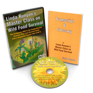 Linda Runyon’s Master Class on Wild Food Survival DVD – Linda taught thousands of people in her wild food classes, including many of the most successful foragers teaching today. This 3-hour DVD contains the key information that she felt was the most important for foragers of all ages to understand. Each of the 60 most common wild plants is discussed in detail, along with additional helpful information on storage and preparation. Included with the DVD is our 46-page Transcript and Glossary. Specific plants or sections of the DVD can be selected for viewing, or the entire DVD can be watched in one sitting.